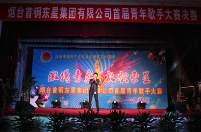 為慶祝中國共青團(tuán)建團(tuán)91周年,提升廣大團(tuán)員青年的綜合素質(zhì),給青年人施展才華搭建平臺(tái),營造健康活潑的文化氛圍,使青年人在東星這個(gè)大家庭里生活得更加陽光、更加自信、更加充實(shí),更好地為東星的發(fā)展建設(shè)貢獻(xiàn)青春、智慧和力量,同時(shí),也為了傳遞正能量,實(shí)現(xiàn)廣大團(tuán)員、青年的青春夢,2013年5月8日,煙臺(tái)東星集團(tuán)有限公司在職工活動(dòng)中心隆重舉辦了以“激揚(yáng)青春•放歌東星”為主題的煙臺(tái)東星集團(tuán)首屆青年歌手大賽,公司本部助理以上領(lǐng)導(dǎo)親臨比賽現(xiàn)場并為獲獎(jiǎng)選手頒發(fā)了獎(jiǎng)狀。